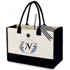Personalized Initial Canvas Beach Bag, Monogrammed Gift Tote Bag for Women